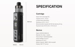 Drag X2 Kit is powered by single external 18650 battery with 80w max and Type-C charging. It is designed with 5ml capacity, easy side filling system, and top airflow intake. VOOPOO Drag X2 adopts button activation so there are few safety concerns. It also adopts PnP X Platform that features A-Ten lifespan to bring you long-lasting use, thermo-stable cotton to bring consistent taste, mesh-distributed heating system to bring denser cloud, patented 4-layer leak-proof design to avoid leakage and automatic production to increase production efficiency.
