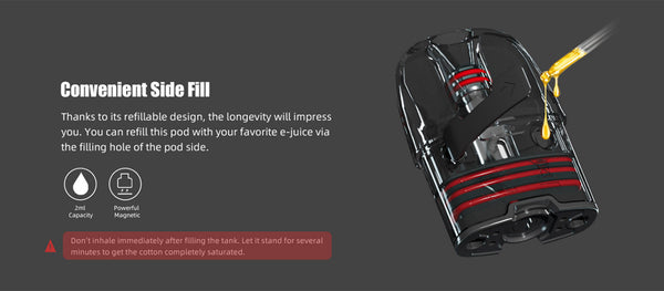 The VV-A2 Pod Cartridge is designed especially for the Teslacigs Punk Pod II Kit/Q Kit/lnvader Kit, coming with 2ml e-juice capacity.