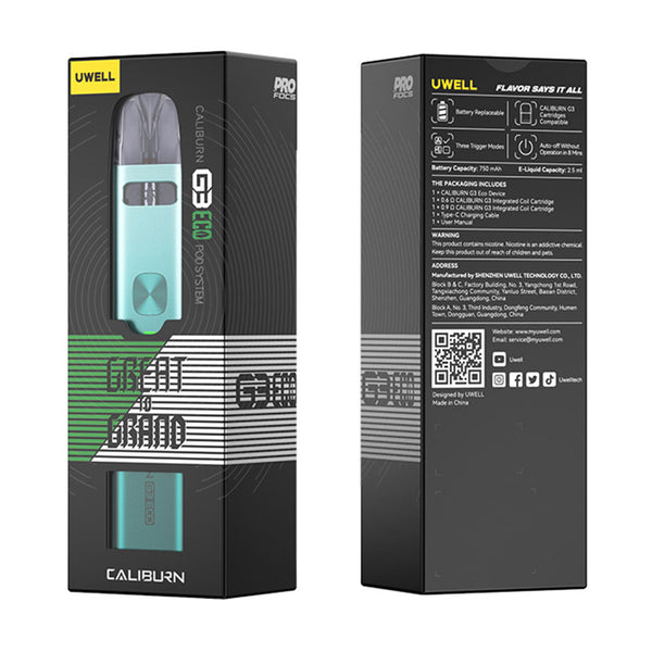Here comes the Caliburn G3 ECO. This is the greatest pod system yet among the Caliburn G series. Compared with G2, we've made an impressive upgrade, and you will expect nothing less overall performance from G3 ECO.