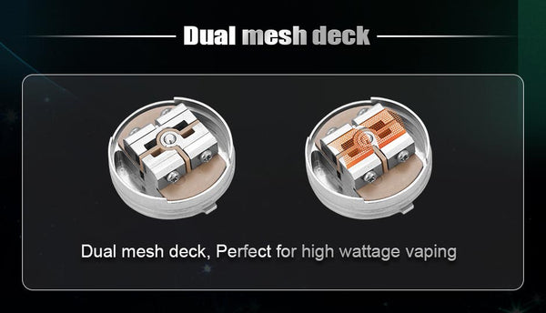 هادرون ميش RDSA، مقاس 30 مم، هو مُبخّر شبكي مزدوج قابل لإعادة البناء، يعمل بالتنقيط أو الضغط من ستيم كريف. صُمم بسطح شبكي مزدوج، وهو مثالي للتدخين الإلكتروني عالي الطاقة. يتميز هادرون ميش RDSA أيضًا بتدفق هواء من الأعلى إلى الجانب، ووصلة 510، ورأس تنقيط 810. وهو متوافق مع خزان ستيم كريف بومبر سكوينكر بسعة 12 مل، ونظام تعبئة جانبي سهل. بفضل وصلة 510، فهو مناسب أيضًا لمعظم أجهزة التعديل.