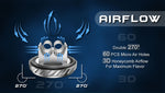 يتميز جهاز Blaze MAX RTA بتصميم كلاسيكي بدون دعامات على شكل حرف "W" يُبسط عملية التركيب. يتيح هذا التصميم المبتكر تركيبًا أسهل للكويلات، مما يُعزز كفاءة التركيب لجميع مُستخدمي التبخير (vaping) من جميع المستويات. وكما هو مُعتاد، يأتي Blaze MAX RTA مزودًا بتدفق هواء مُزدوج بزاوية 270 درجة على شكل قرص العسل، مما يُحسّن بشكل ملحوظ من توصيل النكهة. يتميز Blaze MAX RTA بتصميم تدفق هواء من الأعلى إلى الأسفل يضمن أداءً مانعًا للتسرب بنسبة 100%، مما يجعله خيارًا موثوقًا به للاستخدام اليومي. تمنع هذه الميزة تسرب السائل بفعالية وتحافظ على جودة جلسة التبخير.