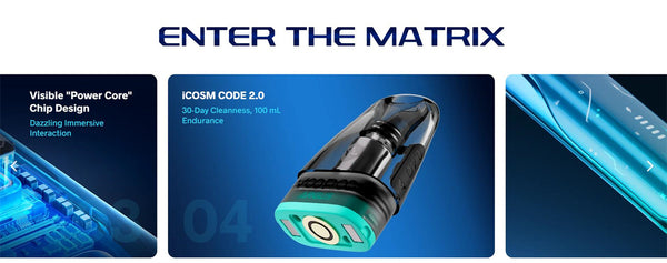 Step into the future with the Voopoo ARGUS Matrix Pod System Kit, a stylish and compact pod system featuring a 1350mAh battery, up to 30W output, and a vibrant Curved Full Screen with Dynamic Cyber Visuals. Built with VOOPOO's iCOSM CODE 2.0 flavor technology, the ARGUS Matrix delivers exceptional taste consistency, leak-resistant design, and an extended 100ml endurance vaping experience. Compatible with the ARGUS Top Fill Cartridge V2, it comes preloaded with both 0.4ohm and 0.7ohm mesh coils, ideal for RDL and MTL styles. Ergonomic, visually stunning, and performance-driven, it's the pod system that does it all.