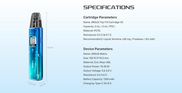Step into the future with the Voopoo ARGUS Matrix Pod System Kit, a stylish and compact pod system featuring a 1350mAh battery, up to 30W output, and a vibrant Curved...