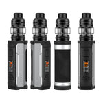 مجموعة أسباير ريا إكس. تتميز هذه المجموعة ببطارية 18650 واحدة، وشحن سريع، وطاقة قصوى تبلغ 100 واط، وشاشة ملونة كاملة مع واجهة مستخدم سهلة الاستخدام، وخمسة أوضاع تشغيل تتضمن التحكم في درجة الحرارة. تأتي المجموعة مع خزان هوراكان بسعة 6 مل، وسهولة إعادة التعبئة، وتدفق هواء علوي قابل للتعديل ومقاوم للتسرب، وملفات شبكية.