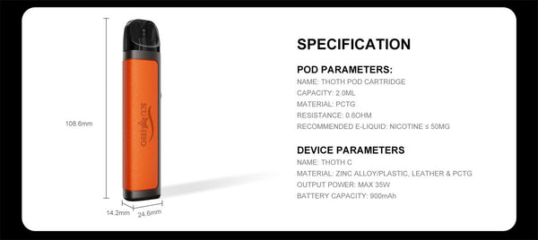 خرطوشة بود من سلسلة THOTH قطعة واحدة، مقاومة 0.6 أوم