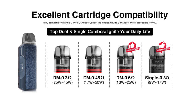 جهاز Thelema Elite S Kit من Lost Vape هو جهاز تبخير إلكتروني صغير الحجم ولكنه قوي، مزود ببطارية سعة 1400 مللي أمبير تكفي للاستخدام طوال اليوم. متوفر بستة ألوان أنيقة، ويدعم الشحن السريع من النوع C لراحة أكبر. يعمل جهاز Thelema Elite S بتقنية E Core Tech 3.0 Dual Mesh، ويُحسّن تجربة التبخير من الفم إلى الرئة (MTL) مع وضعَي BOOST وECO وخرطوشة E Plus Dual Mesh. استمتع بضربة حلق مُحسّنة، وعمر أطول للملف، وتصميم مقاوم للتسريب لتجربة أغنى وأطول أمداً. مع ملف Dual Mesh 0.6ohm للحصول على كثافة عالية، أو اختر ملف Single Mesh 0.8ohm لسحبة أكثر سلاسة، يُبقيك جهاز Thelema Elite S مستمتعاً في أي وقت وأي مكان. صُمم جهاز Thelema Elite S خصيصاً لعشاق النكهة وكثافة البخار، ويتميز بتصميم أنيق ومريح مع تقنية متطورة لتجربة تبخير استثنائية.