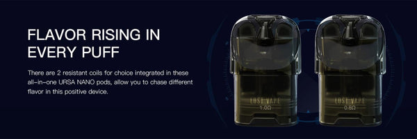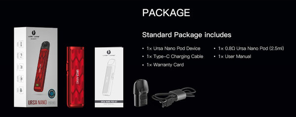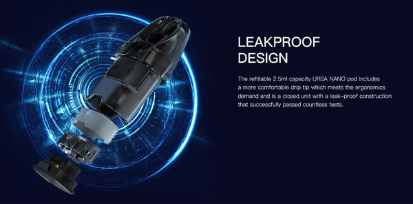 Lost Vape Ursa Kit is decorated with a change color relying on the light and angle you can see, such as geometric, gridded and streamlined patterns covered at front and back, sitting comfortable and ultra-portable. With looks and technology, it promotes itself by the goal of flavors and cloud that coupled with the adjustable airflow control button, allowing you to personalize your MTL style that you can. As mentioned, Ursa Nano provides a 2.5ml vape juice capacity and matches most of the nic salts to purse the good throat hit for the veterans. According to consistently and countless tests, the ergonomic and sleek drip tip is a closed unit with the structure of stemming your e-liquid and has a clean hand. To offer minimal fuss and a maximum flavor, it is equipped with two resistant coils for blowing humongous vapor and exciting sweetness.
