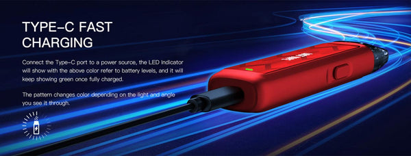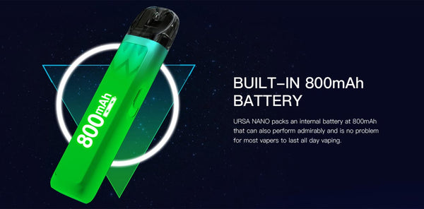 Ursa kit goes had with the all-in-one pod and is powered by 800mAh built-in battery, vaping last all day is a piece of the pie. The power source depends on a type-c connection, for a single charge, you will never worry about losing power. Aside from that, it maintains 18W maximum output and fires rapidly by the draw-activated ignition, delivering a hassle-free experience. Smart charging indication is another key factor that shows the battery levels.