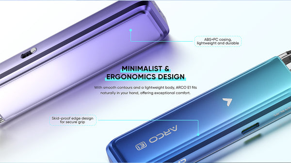 اعثر على طريقتك في التدخين الإلكتروني بسهولة مع جهاز ARCO El، وهو جهاز بسيط من الخارج وذكي من الداخل. يوفر التصميم البسيط أناقة متواضعة، وتُظهر الميزات الذكية وظائفها، مثل الطاقة التكيفية ومؤشر بطارية LED وتوافق سلسلة ARCO pods، مما يجعل التدخين الإلكتروني سهلاً.