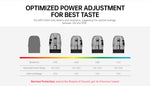 متوافق مع خراطيش سلسلة ARCO (0.4 أوم RDL/0.6 أوم RDL-MTL/0.8 أوم MTL/1.1 أوم MTL ضيق)، تقوم شريحة SmartChip 3.0 بالكشف التلقائي عن مقاومة الملف (بدقة ±0.05 أوم) ومزامنة السمات المُسبقة مع نطاقات الطاقة المُناسبة. يضمن جهاز ARCO MAX تجربة تبخير غامرة وطويلة الأمد. الابتكار يُغيّر تجربة التبخير باستمرار!