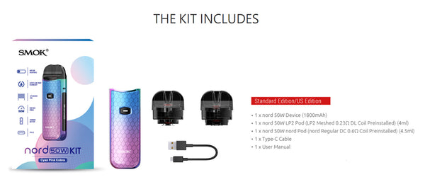 Smok nord 50W الجديد معايير جديدة لسلسلة nord، بفضل بطاريته الداخلية بسعة 1800 مللي أمبير/ساعة، ما يمنحك طاقة تصل إلى 50 واط تُرضيك. تتضمن المجموعة جهازين متعددي الاستخدامات يعملان بشكل مثالي مع نظام تدفق الهواء المُحسّن لتقديم نكهة شهية وبخار كثيف: أحدهما جهاز nord pod المتوافق مع سلسلة ملفات nord، والآخر جهاز LP2 pod المتوافق مع سلسلة ملفات LP2 بتقنية مُحسّنة لمنع التسرب. بناءً على مظهره الكلاسيكي، يتطور جهاز nord 50W إلى مجموعتين تتميزان بمجموعة متنوعة من الألوان والقوام الفاخر الذي يُناسب مزاجك اليومي. الابتكار يُغير تجربة التبخير باستمرار!