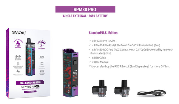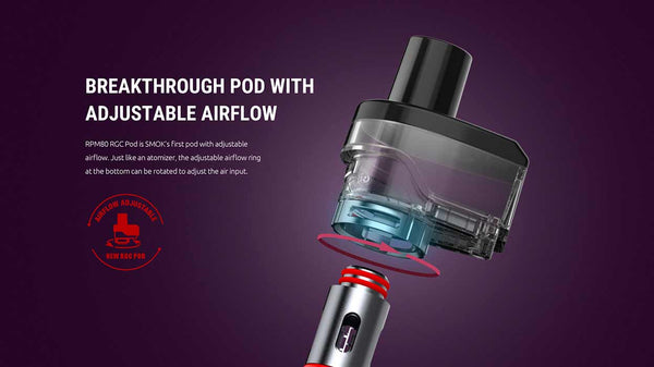 Smok RPM80 series is our next game changer in the pod mod category. RPM80 comes with two pod and two coils: one is the RPM80 RPM Pod, which is compatible with all RPM40 coils, and the other one is the RPM80 RGC Pod, which is airflflow adjustable and uses the new RGC Conical Mesh 0.17ohm coil that supports the power as high as 80watts! Stay tuned for this real game changer! Innovation keeps changing the vaping experience!