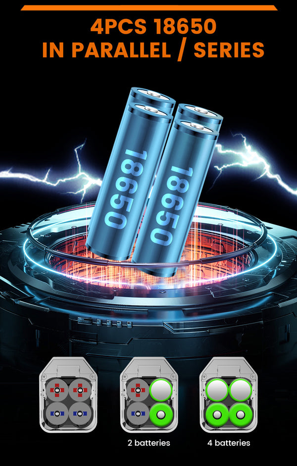 تكوين البطارية: أربع بطاريات 18650 - غير متضمنة