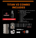 أطلق العنان لقوة لا مثيل لها مع طقم ستيم كريف تيتان V2 كومبو، وهو جهاز تبخير فاخر مصمم لعشاق التبخير الذين يبحثون عن أداء عالٍ وتنوع في الاستخدامات. يعمل جهاز تيتان V2 بوكس مود بقوة 300 واط بأربع بطاريات 18650 (غير متضمنة)، مما يوفر طاقة تصل إلى 300 واط مع جهد قابل للتعديل، وهيكل متين من سبائك الألومنيوم، وشاشة LCD TFT سهلة الاستخدام. عند استخدامه مع جهاز أرومايزر تيتان V2 RDTA، يوفر هذا الطقم مرونة لا مثيل لها بفضل سعة خزانه الضخمة التي تبلغ 32 مل، وعناصر تحكم قابلة للتعديل في السائل وتدفق الهواء، وسطح بناء بدون دعامات يدعم كويلات مزدوجة متصلة على التوالي أو بالتوازي. يأتي هذا الطقم مع ملحقات أساسية، بما في ذلك سطح بناء شبكي مزدوج، وزجاج احتياطي، وغيرها، مما يجعله الخيار الأمثل لمحترفي التبخير.