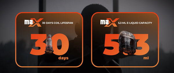 يزيد عمر الملف بنسبة 66% ليصل إلى 30 يومًا مقارنةً بالملفات العادية في نظام البود. شاشة TFT ملونة بقياس 0.96 بوصة تُتيح تجربة بصرية غامرة، بينما تجعل بطارية 1500 مللي أمبير/ساعة وسعة السائل الإلكتروني 5.3 مل تجربة التبخير قوية وطويلة الأمد دون أي قلق.